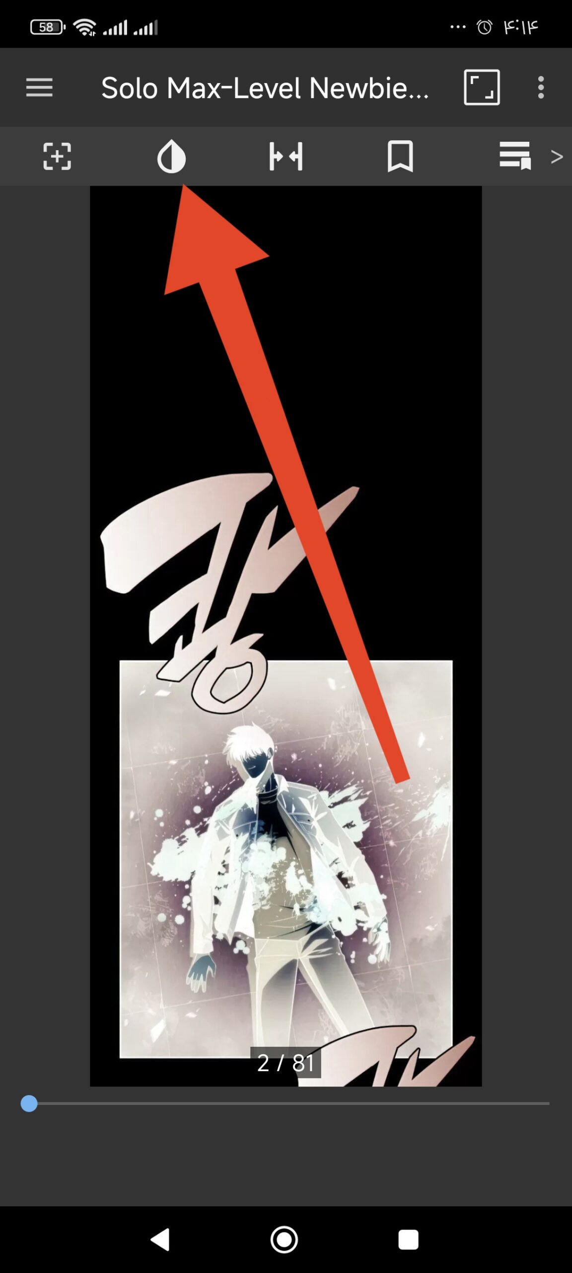 ابتدا بعد از باز کردن نرم افزار مانهوا خود را انتخاب و باز کنید سپس در منوی بالا مطابق تصویر زیر تعدادی آیکون میبینید ورق بزنید تا بتونید آیکون های بیشتر رو مشاهده کنید
