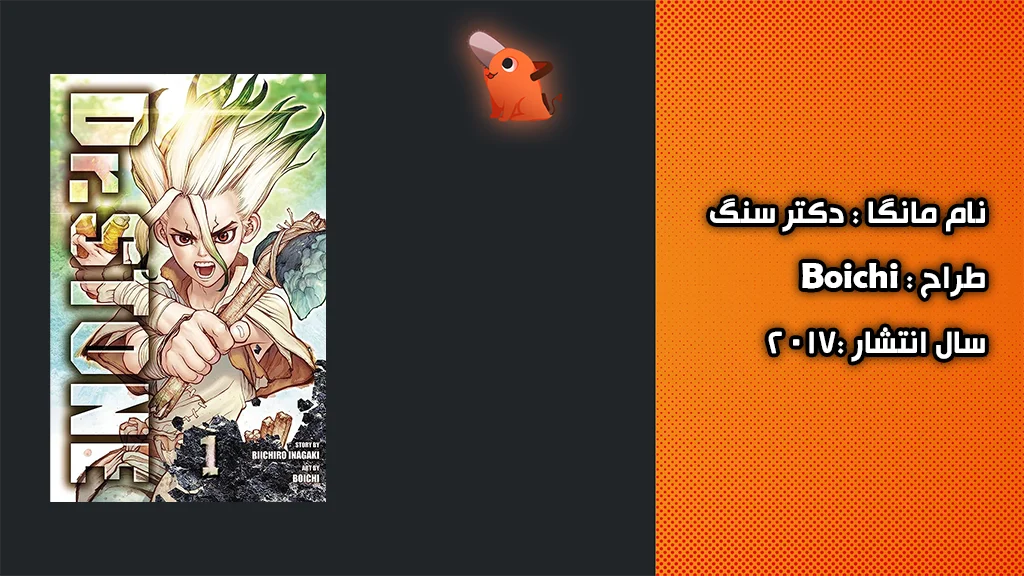 اسم مانگا به فارسی : دکتر سنگ اسم مانگا به انگلیسی : dr.stone زبان : فارسی خلاصه : یک روز سرنوشت ساز، همهی انسانها به وسیله یه نور کورکننده و...
